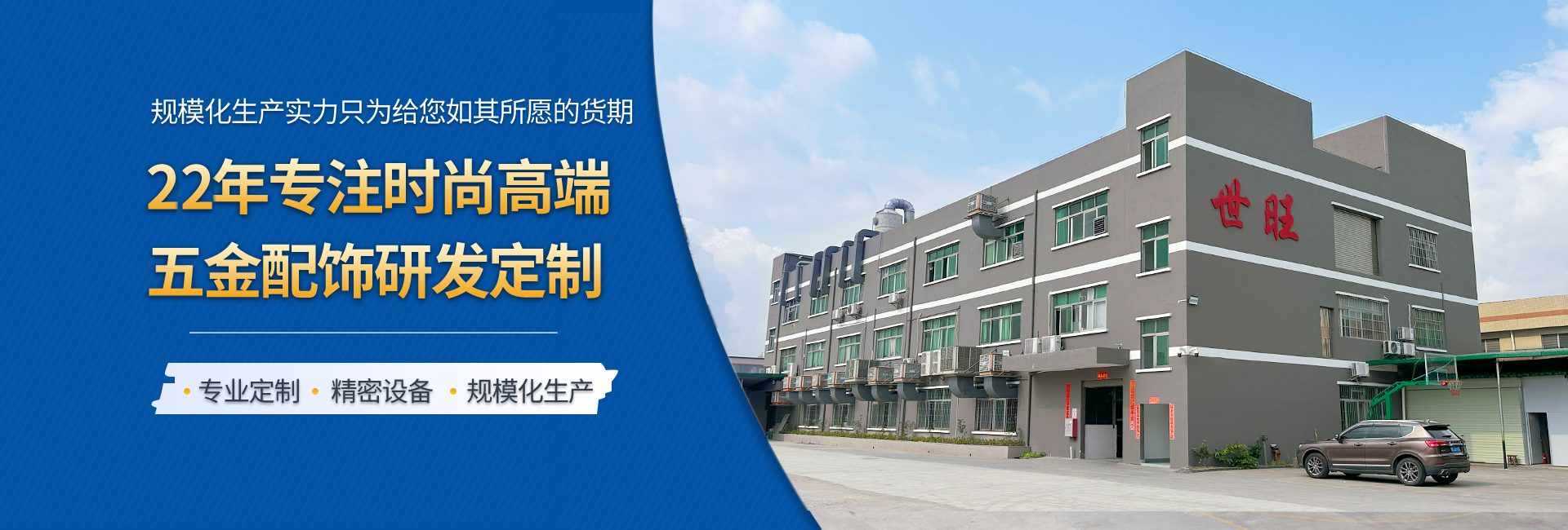世旺五金是一家專業(yè)從事手袋箱包五金配飾定制生產(chǎn)的工廠,始創(chuàng)于2004年,至今19年五金配飾定制經(jīng)驗(yàn),是集研發(fā)、設(shè)計(jì)、制造、電鍍、銷售于一身的企業(yè),擁有14000多平的生產(chǎn)基地,全自動化生產(chǎn)能力,自有模具制造車間和電鍍工廠,日產(chǎn)能20多萬件,還有強(qiáng)大的技術(shù)團(tuán)隊(duì)和高效的銷售網(wǎng)絡(luò)。我們以市場需求為導(dǎo)向,不斷探索和創(chuàng)新,在產(chǎn)品品質(zhì)和性能上達(dá)到領(lǐng)先水平。 我們的產(chǎn)品包括各類五金制品,如高端皮具手袋、消費(fèi)電子、禮品/工藝品包裝、寵物穿戴、汽車裝飾等領(lǐng)域五金配飾,應(yīng)用廣泛,覆蓋行業(yè)多。 以客戶需求為中心,為客戶提供全方位的一站式服務(wù),包括售前咨詢,生產(chǎn)跟進(jìn),售后服務(wù)等等。提供保姆式顧問式服務(wù),與品牌商、手袋廠等共同打造好產(chǎn)品,好IP。
